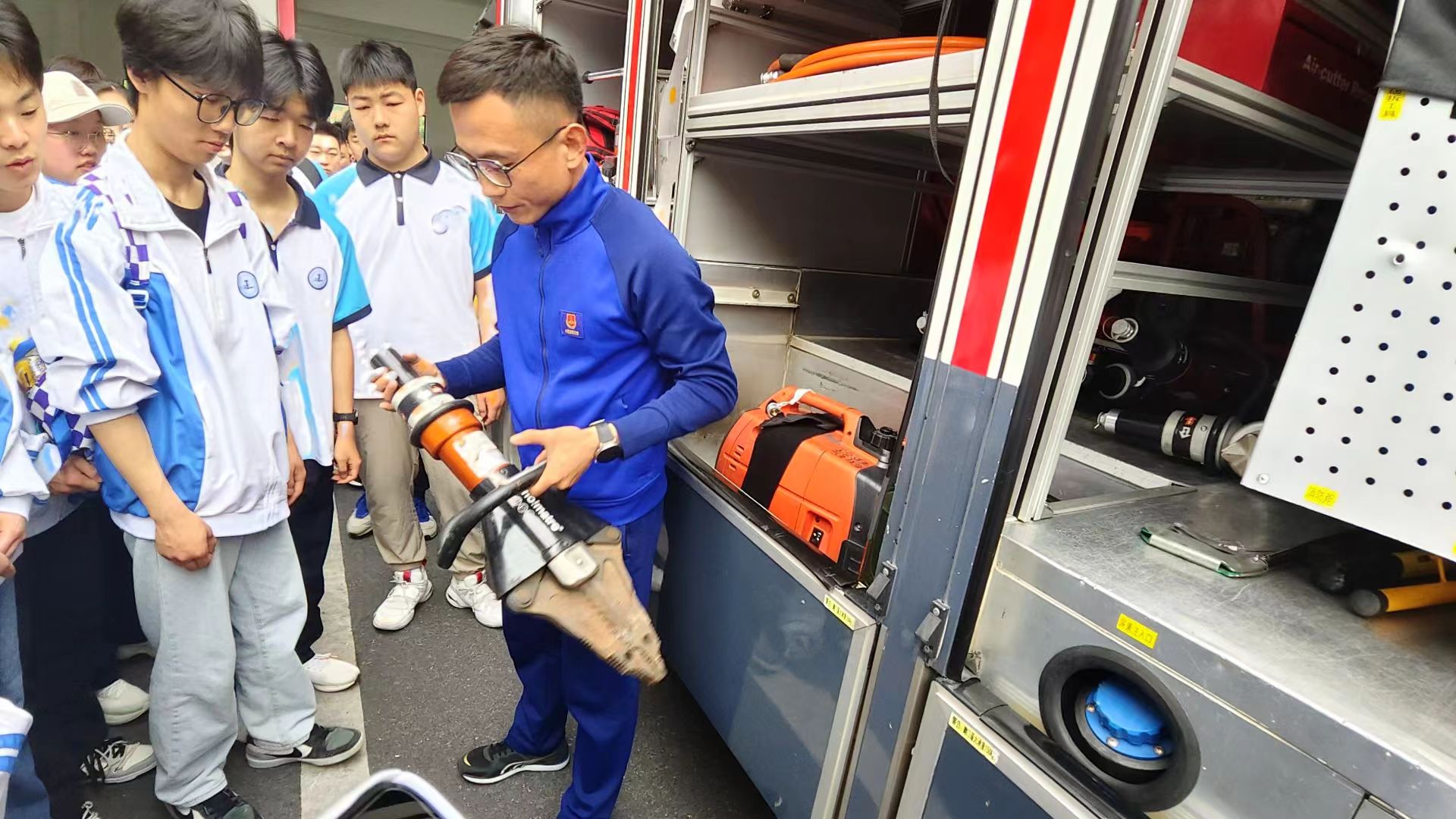 首先,在消防救援裝備區(qū),消防員們?yōu)閷W(xué)生們?cè)敿?xì)講解了各類救援裝備的功能和用途。首先介紹了多功能消防頭盔,這款頭盔不僅具備普通消防頭盔的防護(hù)功能,還配備了通訊設(shè)備,使消防員在火場(chǎng)中能與指揮中心保持實(shí)時(shí)溝通。接下來,消防員展示了滅火防護(hù)服,這種特殊材料制成的服裝能夠有效隔離高溫和火焰,保護(hù)消防員在滅火過程中的安全。此外,學(xué)生們還看到了防護(hù)手套、呼吸器等重要裝備,這些裝備都為消防員在緊急救援中提供了有力保障。然后讓同學(xué)們穿戴消防救援裝備進(jìn)行親身體驗(yàn),在同學(xué)們穿戴過程中,消防員張毅向?qū)W生們介紹了我省消防隊(duì)員穿戴完救援裝備的最快時(shí)間為19秒,穿戴好約80斤重的救援裝備從一樓爬到十樓最快速度的全國(guó)紀(jì)錄是37秒,讓師生們切身感受到穿戴裝備進(jìn)行救援工作的不易。