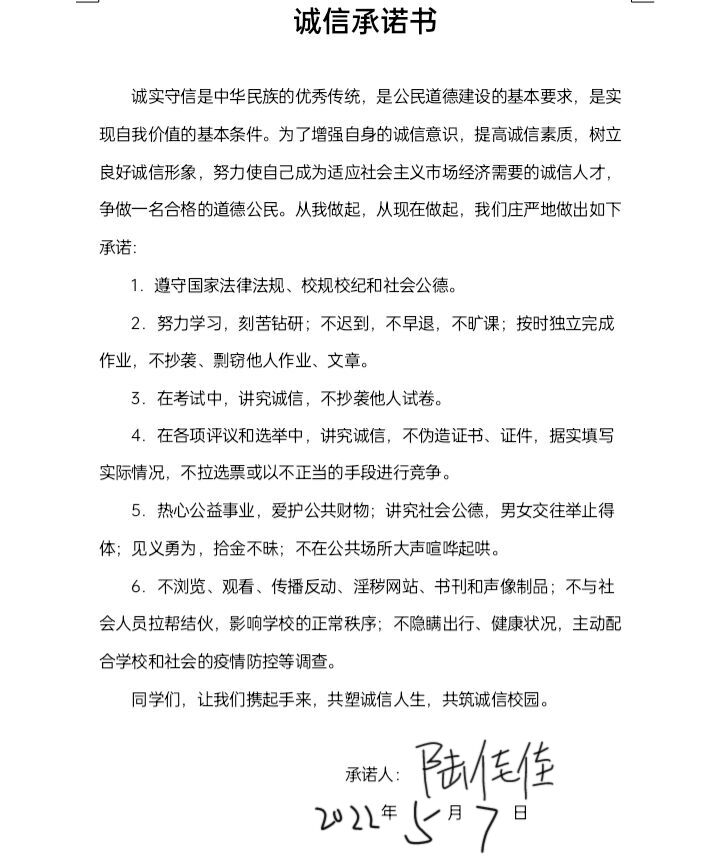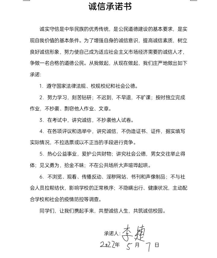 因疫情防控需要學(xué)生居家線上學(xué)習(xí),結(jié)合學(xué)校實(shí)際情況,制訂了資助誠信教育主題月活動(dòng)方案,確定此次活動(dòng)開展采取線上線下相結(jié)合的方式。5 月5日,以“誠實(shí)守信報(bào)國”為主題的學(xué)生資助誠信教育活動(dòng)正式啟動(dòng)。活動(dòng)期間,學(xué)校通過網(wǎng)絡(luò)開展主題班會(huì)、資助征文、感恩演講等多種形式活動(dòng),號召學(xué)生從遵守校紀(jì)校規(guī)、不說謊話、講信用、認(rèn)真考試,杜絕考試作弊等小事做起。