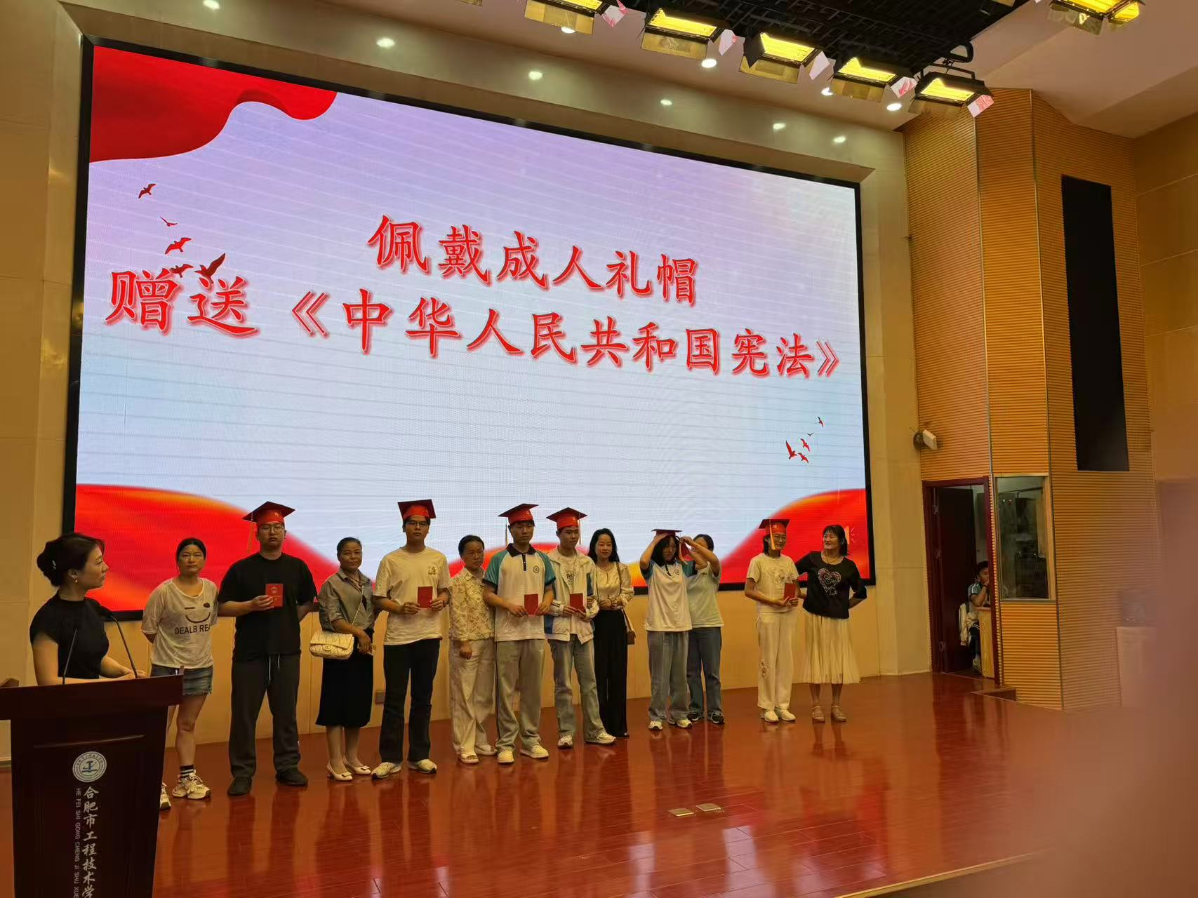 冠禮是中華民族傳承千年的成人儀典,這一承載文明基因的禮儀規(guī)制,不僅是個人成長的重要里程碑,更意味著社會責(zé)任的鄭重擔(dān)承。在全場師生的共同見證下,儀式迎來最莊嚴的時刻——家長們親手為孩子佩戴象征成年的禮帽,并鄭重頒贈《中華人民共和國憲法》,寓意以憲法精神護航成年之路,在法治信仰的引領(lǐng)下開啟責(zé)任與擔(dān)當(dāng)?shù)娜松缕?/span>