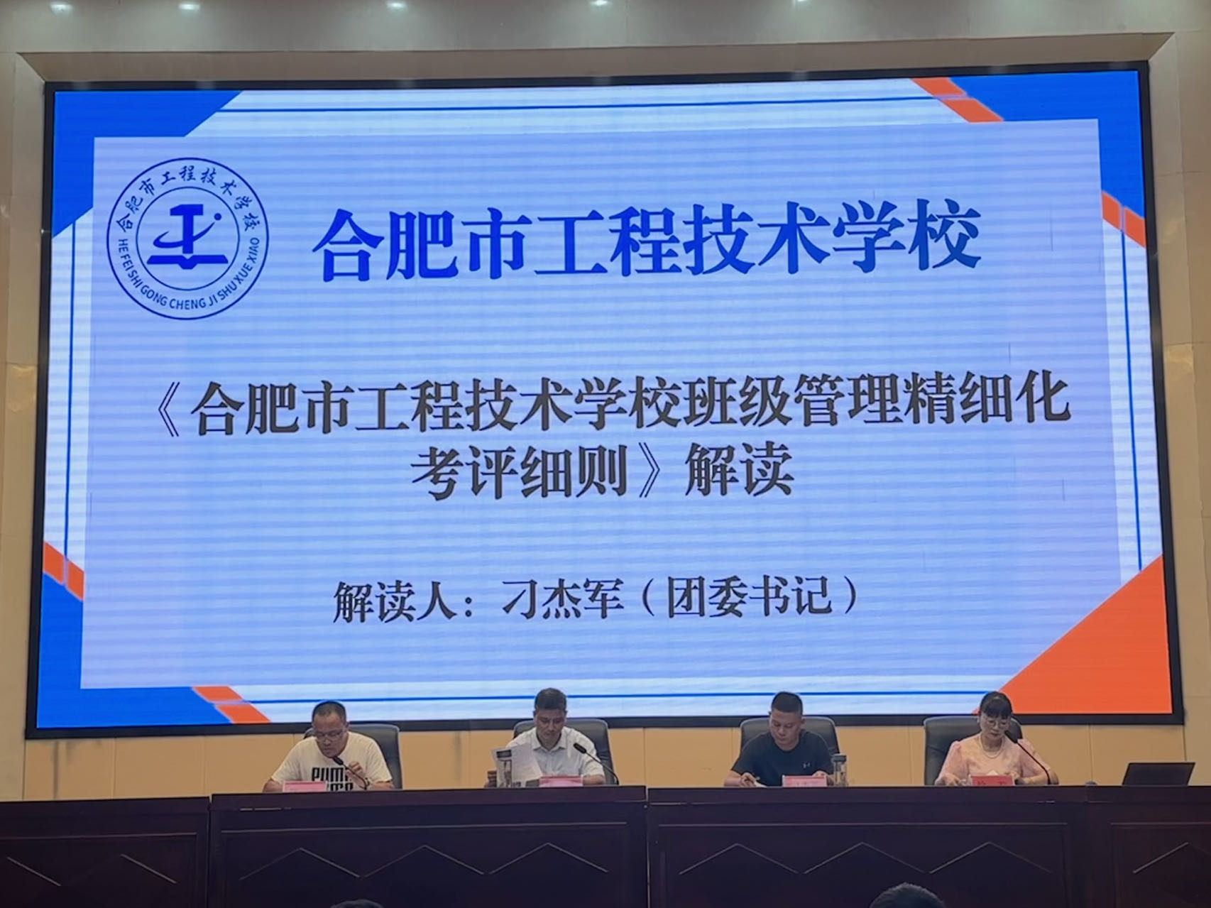 青年班主任培訓(xùn)。為推進(jìn)我校班主任隊(duì)伍的專業(yè)化發(fā)展,進(jìn)一步促進(jìn)青年班主任建班育人能力的提升,幫助他們迅速進(jìn)入角色,適應(yīng)崗位要求。8月27日下午,我校舉行青年班主任崗前培訓(xùn)。培訓(xùn)中,重點(diǎn)解讀了《合肥市工程技術(shù)學(xué)校班級精細(xì)化考評細(xì)則》《合肥市工程技術(shù)學(xué)校學(xué)生校規(guī)校紀(jì)教育實(shí)施方案》,兩名優(yōu)秀班主任代表分別從尊重學(xué)生個性、建立和諧師生關(guān)系、制定班級管理策略、學(xué)生手機(jī)管理四個方面分享了工作方法和心得。會后,舉行了首屆班主任“青藍(lán)工程”結(jié)對儀式。