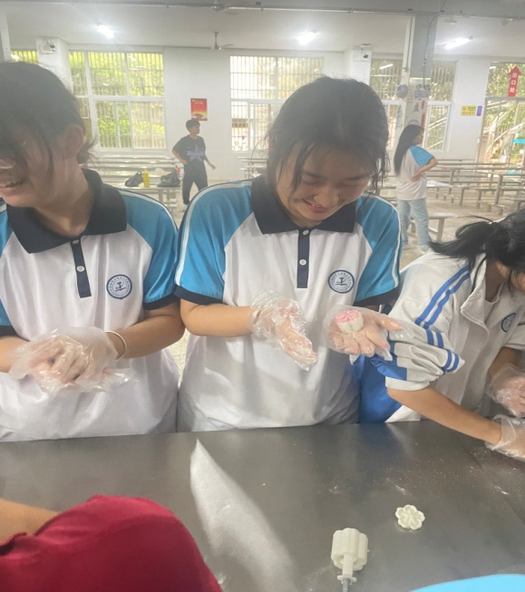 月餅制作:面點(diǎn)師示范做月餅的步驟,同學(xué)們通過親手制作月餅,不僅體會(huì)了制作美食的樂趣,還能向他們傳達(dá)了“月餅”所蘊(yùn)藏的歷史記憶和文化情感。