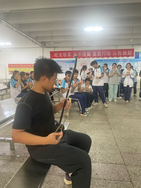 文藝表演:活動(dòng)中學(xué)生們一首飽含深情的詩歌朗誦送給食堂員工,感謝他們默默奉獻(xiàn)和辛勤的付出。隨后,悠揚(yáng)的二胡聲響起,學(xué)生帶來了中國傳統(tǒng)民樂經(jīng)典《賽馬》,將現(xiàn)場的氣氛推向高潮。