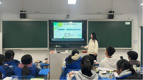 心理健康教育是中職學校德育的主要內(nèi)容。為落實立德樹人根本任務,廣泛宣傳心理健康知識,提高中職生心理健康水平,樹立正確的心理健康觀念。11月16日下午,我校在多功能報告廳舉辦了一場題為《抑郁情緒與抑郁癥識別與應對》的心理健康講座。本次講座由國家二級心理咨詢師、學校心理健康教研室主任李淑進老師主講,全體學生通過線上、線下兩種方式聆聽講座。其中,22級機電3班、22級計算機1班、23級計算機班的學生在多功能報告廳以線下方式參與,其余班級的學生在班級以線上方式參與。