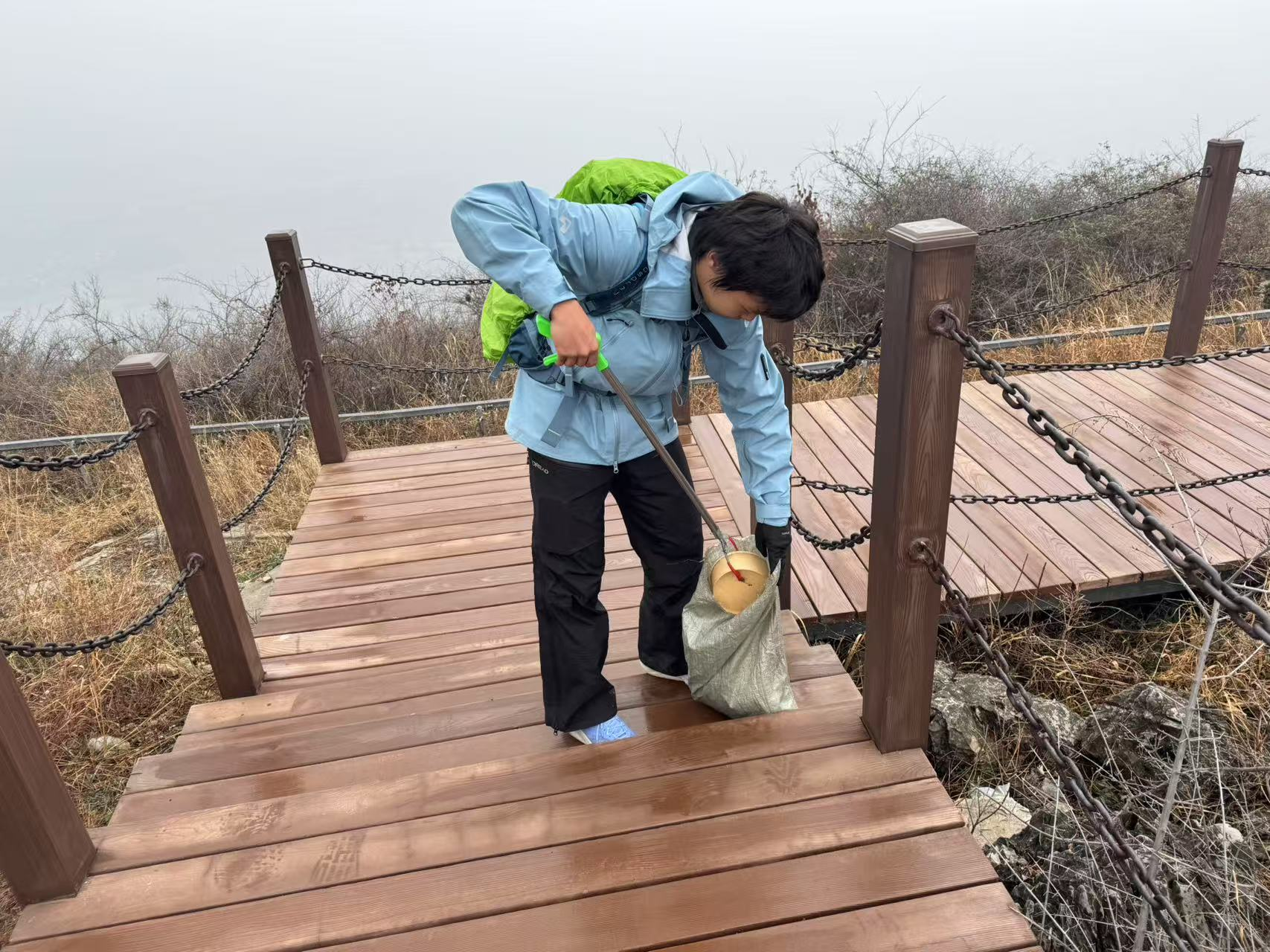 活動開展之前,帶隊老師向同學們強調(diào)了活動期間的紀律和安全要求,并進行了任務(wù)分工。隨后同學們帶著環(huán)保工具,分成若干小組,沿著湯山的登山步道及周邊區(qū)域有序地開展垃圾清理。各小組配備了垃圾袋、垃圾鉗等專業(yè)工具,對沿途的塑料瓶、食品包裝袋、煙蒂等垃圾進行細致清理?;顒又?,同學們熱情高漲,不怕臟不怕累,緊密配合,充分發(fā)揚團隊協(xié)作精神。一路下來,大家手里的垃圾袋滿了,原本散落在路邊、草叢中的垃圾被清理干凈,湯山登山步道及周邊區(qū)域的環(huán)境衛(wèi)生得到了明顯改善,步道兩旁的自然景觀煥然一新。看著用自己辛勤的汗水換得的勞動成果,同學們的心情無比的輕松和喜悅。