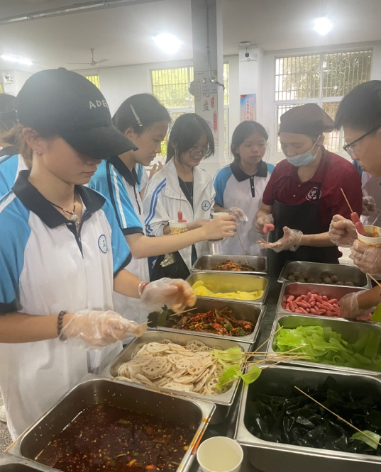 自制缽缽雞:“缽缽雞,一元一串的缽缽雞”。這是線下一種很火的網(wǎng)紅小吃,通過這次活動(dòng),讓孩子們也來制作一把潮流小吃“缽缽雞”。