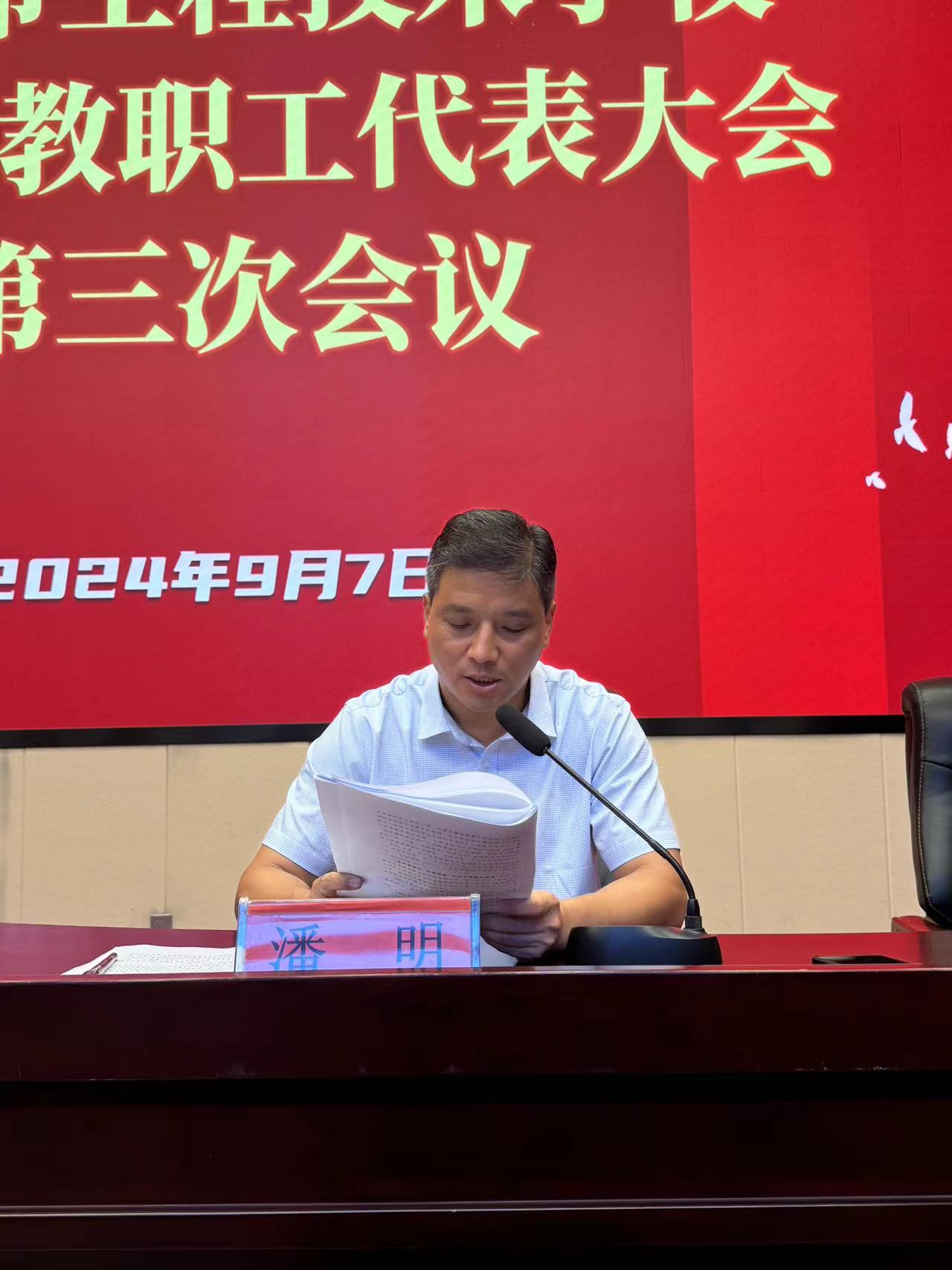 9月7日,合肥市工程技術(shù)學(xué)校第二屆教職工代表大會(huì)第三次會(huì)議,在學(xué)校多功能報(bào)告廳勝利召開(kāi),37名教職工代表出席本次大會(huì),6名中層以上干部列席會(huì)議。會(huì)議由第二屆教代會(huì)執(zhí)行委員會(huì)主持。