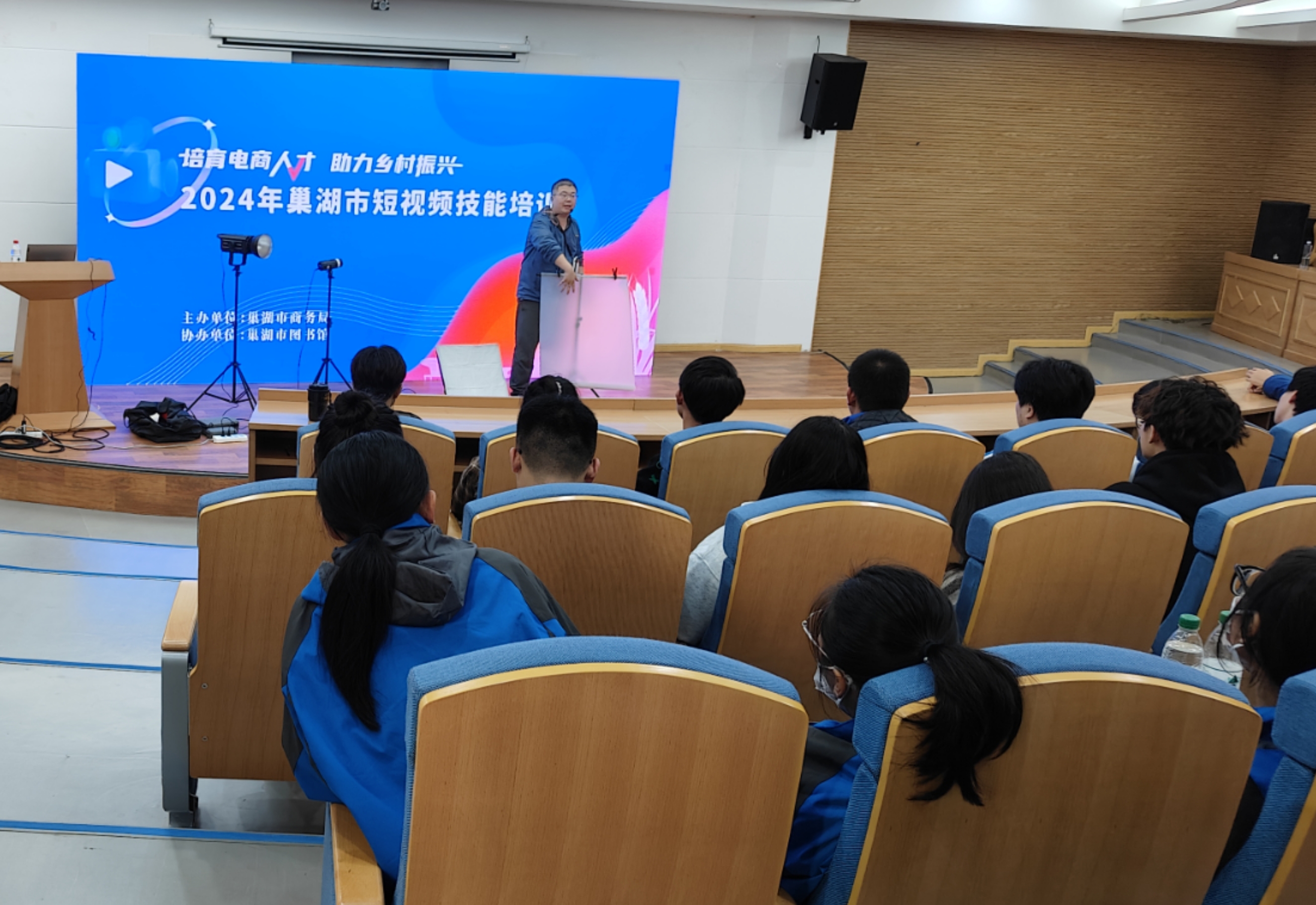 為進(jìn)一步提升我校電子商務(wù)專業(yè)學(xué)生的專業(yè)素質(zhì)和能力水平,增強(qiáng)專業(yè)自信和職業(yè)規(guī)劃意識(shí),更好適應(yīng)即將到來(lái)的實(shí)習(xí)和就業(yè),滿足社會(huì)發(fā)展和鄉(xiāng)村振興對(duì)電商人才的需求,11月10日下午,學(xué)校組織2022級(jí)和2023級(jí)近百名電子商務(wù)專業(yè)學(xué)生赴巢湖市圖書館,聆聽由巢湖市商務(wù)局主辦,以“培育電商人才 助力鄉(xiāng)村振興”為主題的短視頻技能培訓(xùn)講座,相關(guān)班主任和部分電商專業(yè)教師參加了講座活動(dòng)。