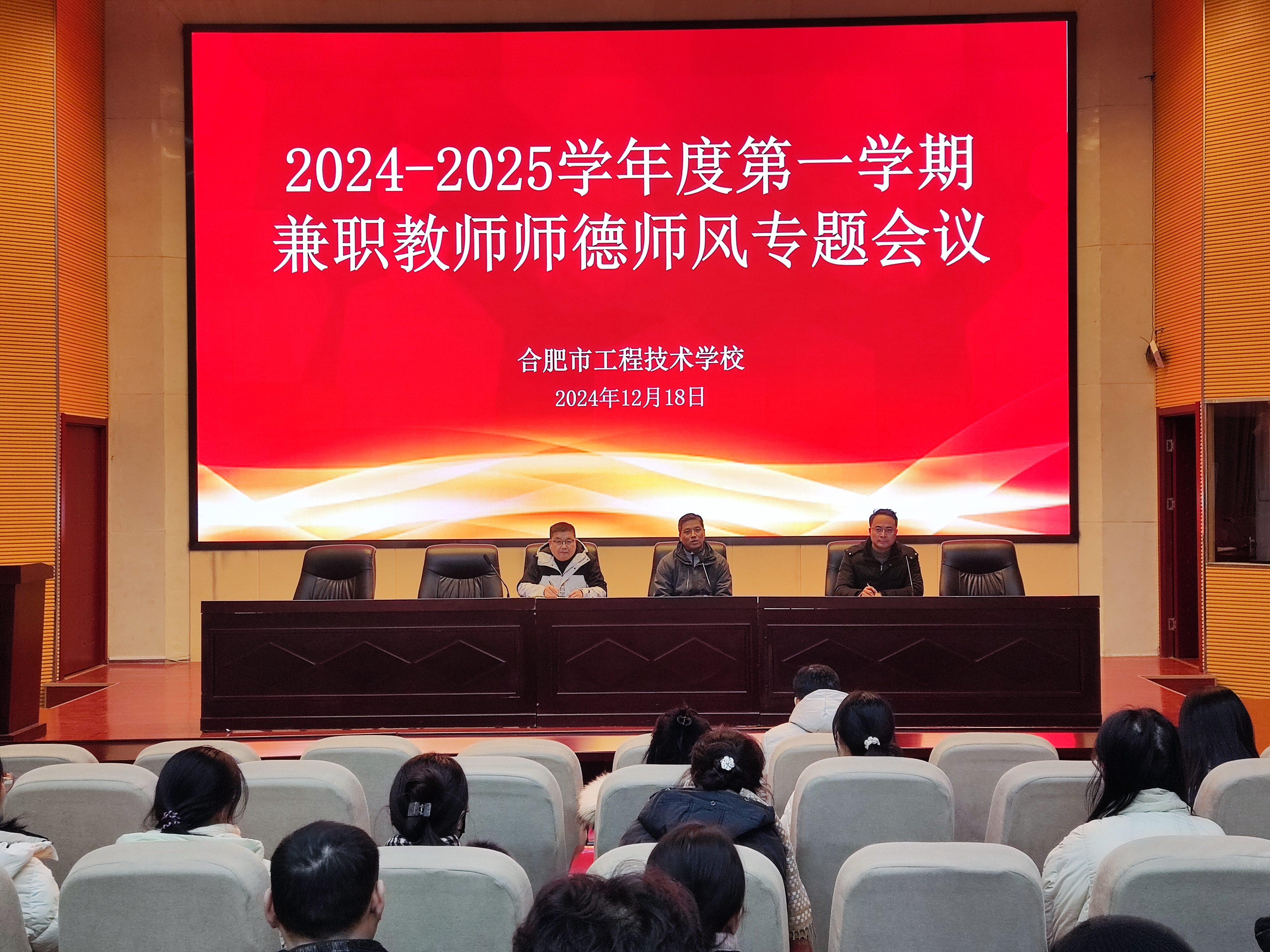 為進(jìn)一步加強(qiáng)我校兼職教師師德師風(fēng)建設(shè),提升教育教學(xué)質(zhì)量,12月18日,我校在多功能報(bào)告廳開(kāi)展2024-2025學(xué)年度第一學(xué)期兼職教師師德師風(fēng)專題會(huì)議。校長(zhǎng)潘明,紀(jì)委委員、督學(xué)杜兵和全體兼職教師參會(huì),會(huì)議由教務(wù)處主任王雪峰主持。